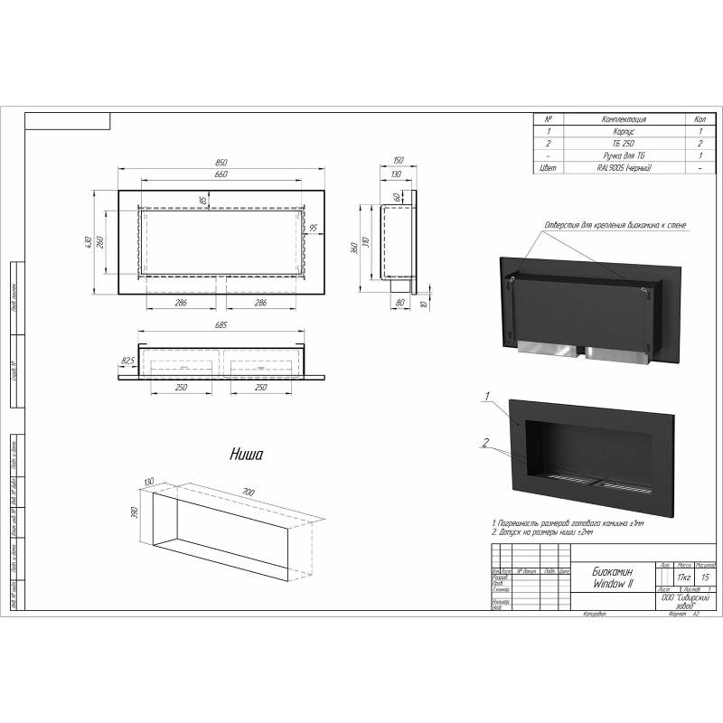 Размер камина